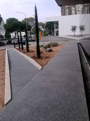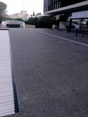 A user-friendly space with dining, presentation, cafeteria, gym, outdoor communal areas and swimming pool. The open square above which the building "floats" is dressed in UniPave, as are the poolside areas, driveways and the disabled access ramp.